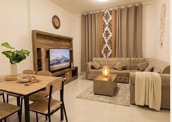 The Borderline Suite - Modern Sky View At Dubai-Sharjah Border, som ligger 3 km från Sharjah-akvariet, har ett delat kök för självhushållning. Cirka 10 minuters bilfärd från den här lägenheten hittar du Al Noor-moskén.